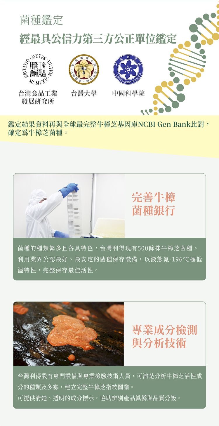 以精選培養基、無塵室培育出高品質牛樟芝子實體